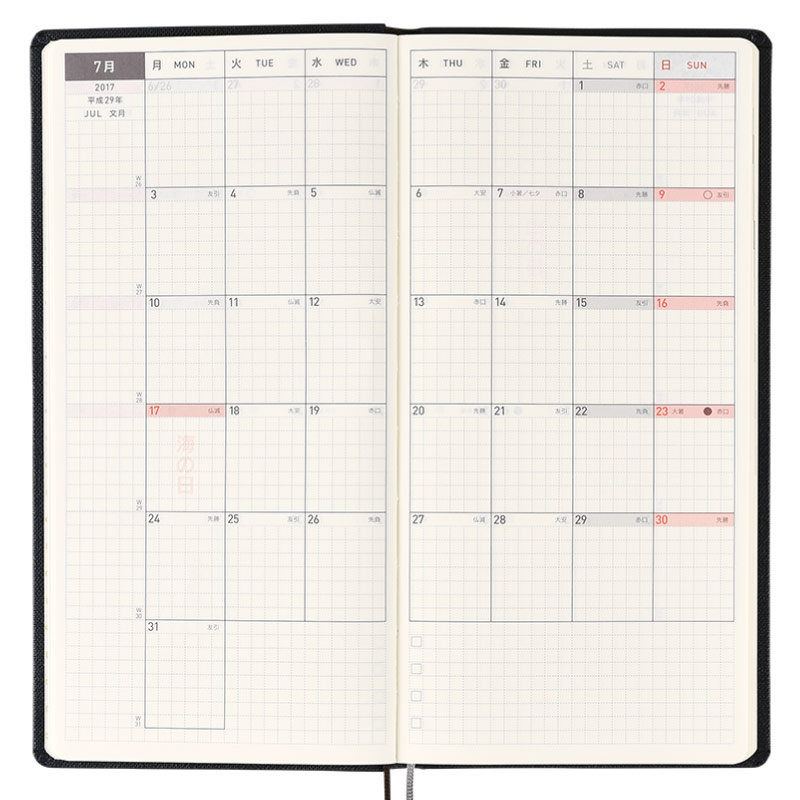 携帯に便利な週間タイプ。長財布サイズの週間手帳です。