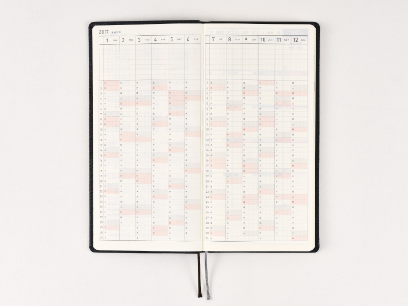 1年分を見開きで一覧できる、長期的な予定管理のページです。