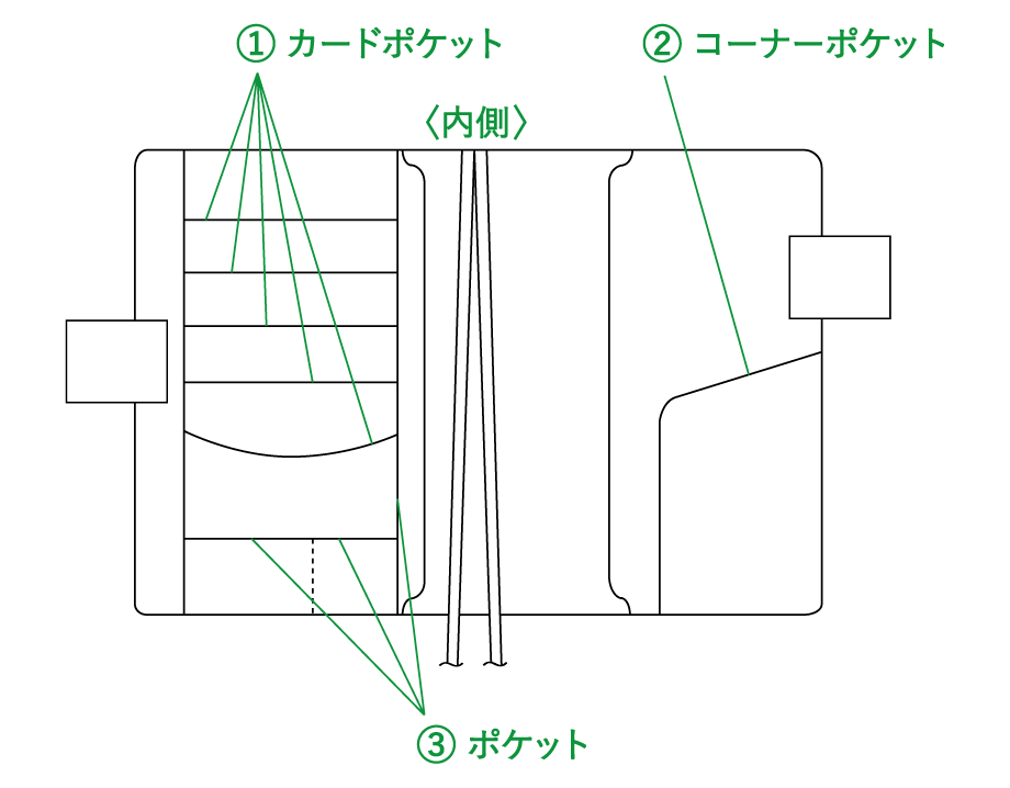 あらかじめご了承ください。- 「外側のポケット」はついていません