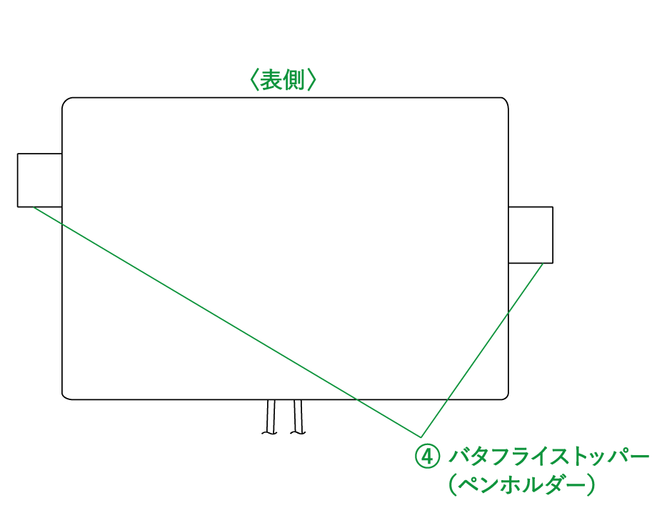 バタフライストッパー(ペンホルダー)にさす場合は、