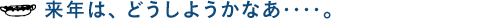 「来年はどうしようかなあ‥‥。