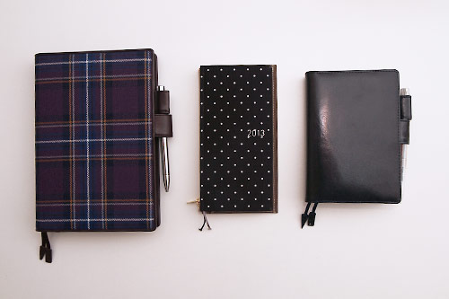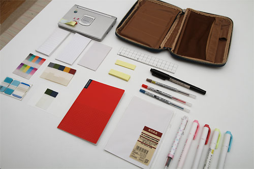 赤いノートは「ほぼ日のメモ帳」ですね。