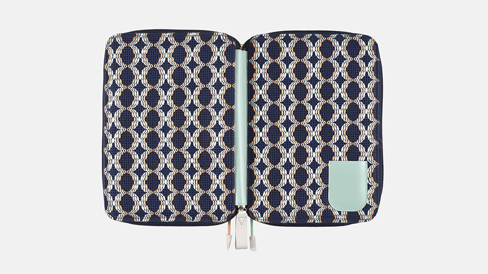深い夜のネイビー地に、夕方の空のサーモンピンク、