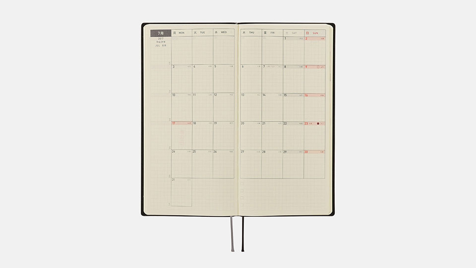 祝日、記念日など(バレンタインデー、ひなまつり、母の日、父の日など)/月の満ち欠け(1日ページ全ページに記載・月間カレンダーに満月と新月のみ記載)