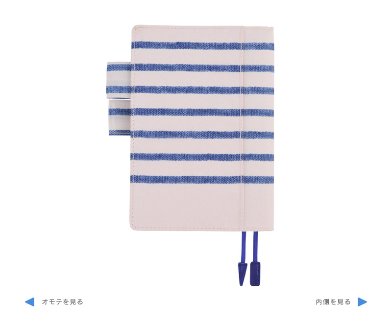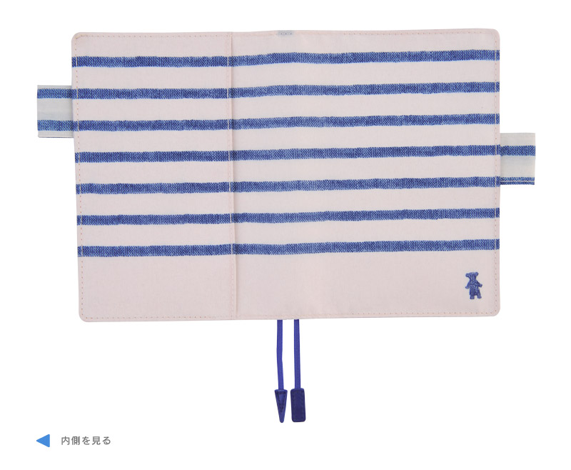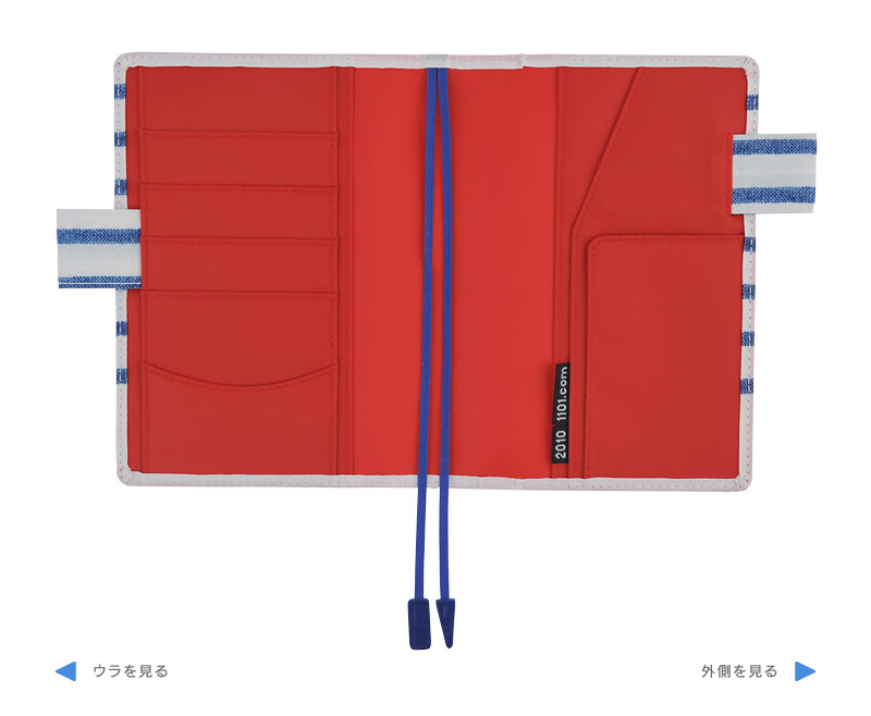 内側の赤い生地と、ブルーのしおりの組み合わせが、