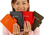 この4色ともすべて、有りものの生地を使わず、 「ほぼ日手帳2003」のために、 オリジナルの色を作って、生地を染めています。 これぞ、正真正銘、世界でたったひとつの、 オリジナルの手帳です! |