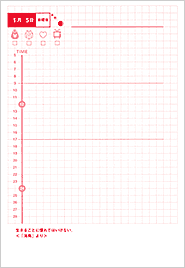 時間軸は、朝の5時から夜中の4時(28時)まで たっぷり書き込めるようになっております。 9時-17時にうすーい線があったり、 12時と24時をわかりやすくしたりと、 要所要所にポイントをつけて、 スケジュールを書き込みやすくしました。 |