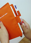 ■ポケットがいっぱい! 豊富な収納スペース クレジットカード、定期券、名刺などのカード類が入る “カード入れ”は、 スムーズにカードが入れられるように、 若干、幅を多めに取っています。 (逆さにしても落ちないのは実験済み!) それにくわえて、パスポートや保険証、 そして大事な人の写真やばんそうこうまで入る、 “大きなポケット”もついています! これさえあれば、電車にだって乗れますし、 (行こうと思えば・・・)海外だって行けるかしら!? ■“歴史と伝統の文庫本サイズ” サイズは、文庫本のサイズです。 文庫本サイズって、手にすっぽりおさまるし、 パンツのうしろポケットにもすっぽり入るし、 持ち歩きやすくって、 とっても便利なサイズなんですよね。 重さは、カバー+本体あわせて250グラムで、 本体は、たて15cm×よこ10.5cm、厚さ1.2cm、 カバーをつけると、たて16.6cm×よこ12cmです。 |