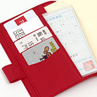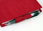 3.おしゃれで、機能的な、 バタフライストッパー 昨年にひきつづき、カバーのペン差しは、 かばんの中で手帳がぱかっと開いてしまわないように、 ペンさしをカバーのおもて面とうら面両側につけて、 その2つのペン差しにペンを通せば留め具になるという 蝶番(ちょうつがい)スタイルの “バタフライストッパー”です。 この“バタフライストッパー”機能的なだけでなく、 見た目もすっきりして、とってもおしゃれです! 逆に、すぐに手帳が開くようにしたい、という方は、 ペンを片方だけに差しておけば、オッケーです。 このバタフライストッパーも、変えませんでした。 |
