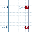 2004年版同様、大安吉日は、 月間カレンダーに載せております。 大事な日取りを決めるときなど、 「この日は大安だ」とか 「この日はあまり日取りがよくない」なんてことが、 1ヶ月ごとにぱっとわかって、とっても便利です。 また、“月の満ち欠け”は、 基本的に1日1ページの方に載っていますが、 “満月”は、やっぱり見れたらうれしいものなので、 月間カレンダーにも掲載しましたっ! |
