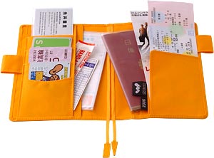 “チケットポケット”も新たにくわわって、 名刺やクレジットカードが入る「カードポケット」、 パスポートや保険証がすっぽり入る「大きなポケット」、 そして昨年から新登場した「外側のポケット」と、 手帳カバーの収納力は、年々、アップしています! とくに昨年から新登場した「外側のポケット」は、 定期や切符、プリントアウトしたお出かけ先の地図など、 外出先ですぐに取りだしたいものを、 すっと簡単に取り出せて、お使いのみなさまからも 大好評でした! そもそも、この手帳カバーは、 「何でもかんでもざぶざぶ詰め込める“たるみ手帳”」 をめざしてつくりはじめたものですが、 収納スペースがますますふえて、 カードからハガキや仕事のメモ、絆創膏といったものまで、 いろんなものをちゃんと整理して収納できるから、 さらに使い勝手がアップしました。 場合によっては、お札をポケットに こっそり入れておけば、お財布いらずで、 これ一冊だけ持って、身軽にお出かけもできますよ。 ![]() こんなに入ります! *「革カバー」にも、上記の ナイロンカバーと全く同様のポケット機能がつきます。