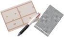 *ほぼ日ストア特典その1 「下敷き・ボールペン・メモ帳」のおまけセットは、 「ナイロンセット」「革セット」「本体のみ」の商品に、 おまけとしてつきます。 ◆<使えるアイテム・その1> リクエストの多かった下敷き、ついに実現! 1月、2月といった年のはじめの方の予定を書き込むとき、 カード入れにカードが入った状態だと、 下がボコボコして書きにくい・・・・ 筆圧を強く書き込むと、 裏のページにボールペンの跡がついてしまう・・・・ 上記の理由で、日々、「書きづらいなあ」と思いながら、 お使いいただいていた方には、 下敷きは、“切実に必要なもの”ですよね。 今回はじめて実現したこの下敷きは、 手帳カバーの中にすっぽりおさまるサイズですので、 「私は、必要ないかもなあ」という方も 手帳に、そっとしのばせておいて、 いざというときに、お使いくださいね! デザインは、各カバーに合わせて、 ブラックバージョンとホワイトバージョンの 2種類用意しましたっ! ロゴのプリントカラーがホワイトの、 “おいしそう”な新色4色 「さくら」「グリーンティ」 「マンゴー」「ブルーベリークリーム」 は、ホワイトバージョンの下敷きがつきます。 ![]() ロゴのプリントカラーがグレーの定番3色、 「ブルーブラック(紺)」 「スカーレット」 「ブリリアントブラック」 は、ブラックバージョンの下敷きがつきます。 また、革カバーのセット全色、本体のみも、 ブラックバージョンの下敷きがつきます。 ![]() ◆<使えるアイテム・その3> カードサイズにも切り取れる! 驚異の切れ味、メモ帳ライト。 「メモページをもっとふやして欲しい!」 というご要望にお応えして、 昨年から登場しました「メモ帳ライト」。 手帳に書き込むほどでもない、ちょっとしたメモや、 地図を書いて渡すときなどに、とっても便利です。 ![]() 昨年の「メモ帳ライト」のミシン線は タテ方向のみでしたが、 今年は、カードサイズでも切り取れるように、 ヨコ方向にも2本ミシン線が入っておりますので、 人への伝言、置き手紙などにも使えて、 さらに用途が広がりました! 「メモ帳ライト」の隠れた自慢は、 何といっても、驚異の切れ味を誇る、ミシン線! 驚異的な切れ味を実現するため、 実は、ものすごーーーく、 細かいミシン目が入っているんです。 そのため、肉眼では、ミシン目を確認できないほど! そんなわけで、昨年は、 「私のメモ帳ライトには、ミシン目が入っていません!」 というお問い合わせを多数いただきました。 きっと、いまだに、ミシン目の存在を知らずにいる方も、 けっこういらっしゃるにちがいない! というわけで、今年は、 ミシン目を探していただかずにすむよう、 あらかじめ、ミシン目のところに、 小さなマークをさりげなく入れております。 ぜひ、今年こそ、驚異の切れ味をご堪能くださいませ! ◆<使えるアイテム・その2> 大ヒット3色ボールペンの ほぼ日オリジナルデザイン版。 手帳にふさわしいボールペンとは‥‥ ・力を入れず、すらすら書けて、 長時間の筆記でも、疲れにくい。 ・なめらかな書き心地。 ・手帳の紙と相性がよく、 にじみにくく、乾きの早いインク。 ・ペン先が細めで、細かい書き込みもしやすい。 などなど、上記の条件を満たしていること。 なおかつ、今年のペン探しのもう一つの大きなテーマは、 ずばり、 “替え芯が手に入りやすい”こと! これらすべてを満たした、 「ほぼ日手帳2005」のおまけのボールペンは、 PILOT・三色(赤・黒・青)ボールペン 「FEED・GP3 0.5」(油性極細仕様) ほぼ日オリジナルデザイン版 PILOTといえば、 大ヒット商品「ドクターグリップ」をはじめとして、 疲れにくく、快適な書き心地のペンの開発で 定評のあるメーカーさんですよね。 先日の手帳アンケートでも、 「PILOTのFEED・GP3がとっても書きやすいので、 次回のおまけのボールペンに、ぜひ!」 というご希望が寄せられておりました。 「FEED・GP3 0.5」の大きな特長は‥‥ 1.油性インクなのに、 まるで水性のようななめらかな書き味。 →速記にも適します。 2.耐水性がよく、速乾性にすぐれ、にじみにくい。 →雨や汗でもにじみにくいので、 書き込んだ情報を守ります。 3.薄い紙でもタッチが柔らかく、 紙を傷める心配も少なめです。 4.グリップ部分の樹脂は、強く握ってもズレにくく、 ハードで安定した筆記を楽しめます。 5.摩耗に強く、最後まで、なめらかな書き味を保ちます。 6.ペン先が0.5ミリの極細タイプで、 手帳に細かく書き込めます。 7.赤・青・黒の三色それぞれを使い分けて、 カラフルにスケジューリングできます。 この「FEED・GP3 0.5」は、 その書き心地のよさで、3色ボールペンの中でも、 すっかりおなじみとなっている大ヒット商品。 今回は、その大ヒット3色ボールペンの、 ほぼ日限定オリジナルデザイン版なんです! そして、下敷きと同じく、ボールペンも ブラックバージョンとホワイトバージョンの2種類、 用意しましたっ。 どちらも、プライベー