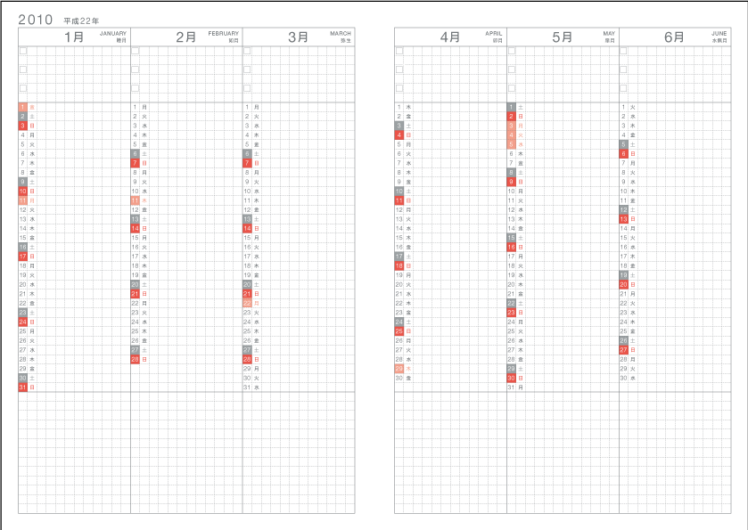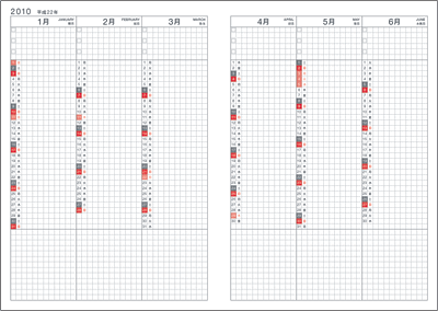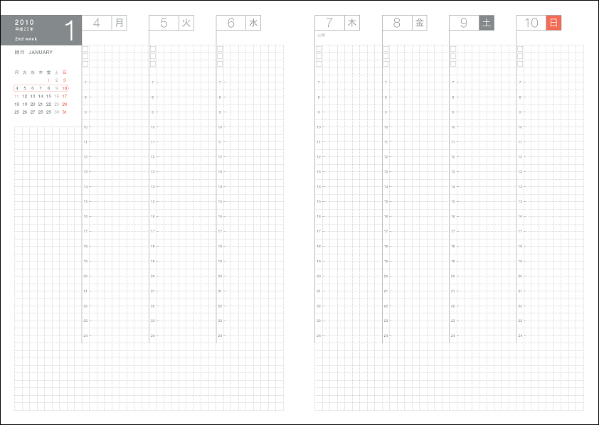 見開き:1ページに一週間の読みやすいレイアウトです。