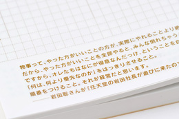 「ほぼ日手帳」をつくっている「ほぼ日刊イトイ新聞」は、 「ほぼ日」には、創刊から現在に至るまで、 なるほどなあ、と思わずうなずく、新しい考え方だったり、 「ほぼ日手帳 2011」には、 数多くあるすべての手帳の中で、 「日々の言葉」は、毎日「ほぼ日」を作っているんだ、 |