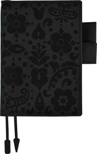 草花の文様を黒に黒をあわせて浮き上がらせ