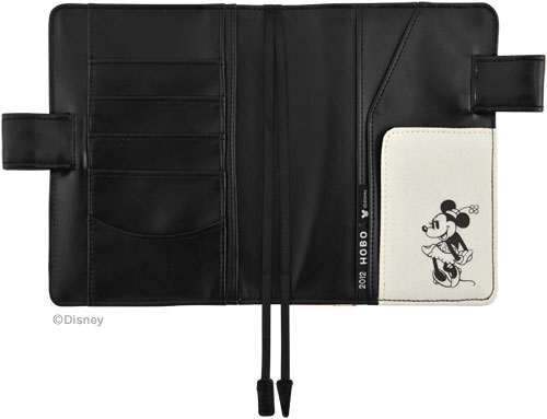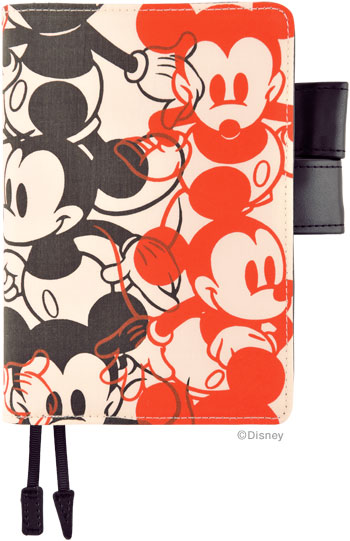 2年目のミッキーカバーは、 手帳のタイトルも「ミッキー・ミッキー」と、 クラシックなミッキーのアートに合わせて、 手帳を開いた右側のチケットポケットには、 ミッキーとミニーが仲良く1つの手帳の中に。 |