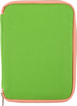 ご覧のとおり、 カバー素材にはパラフィン(ロウ引き)加工が カラーはネイビーとグリーン、2色での展開です。 |
