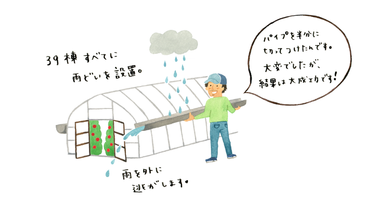 ハウスのなかに夕陽と同じ色のLEDを設置し、