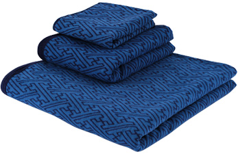配色は、藍色のガーゼ地に、濃紺の卍柄。
