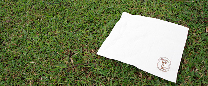 綿花の自然な味わいを備えた 本きなりの「やさしいタオル」に ブイヨンのイラスト・ロゴを プリントしたかわいらしいハンドタオルです。 片面がパイル面、片面がガーゼ、 吸水力バツグンですから、 夏のさまざまな場面でご活用ください。
