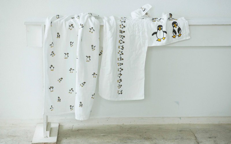 黒と黄色でプリントしたペンギンたちが並んでいます。
