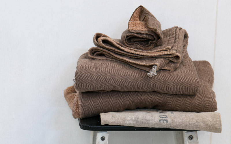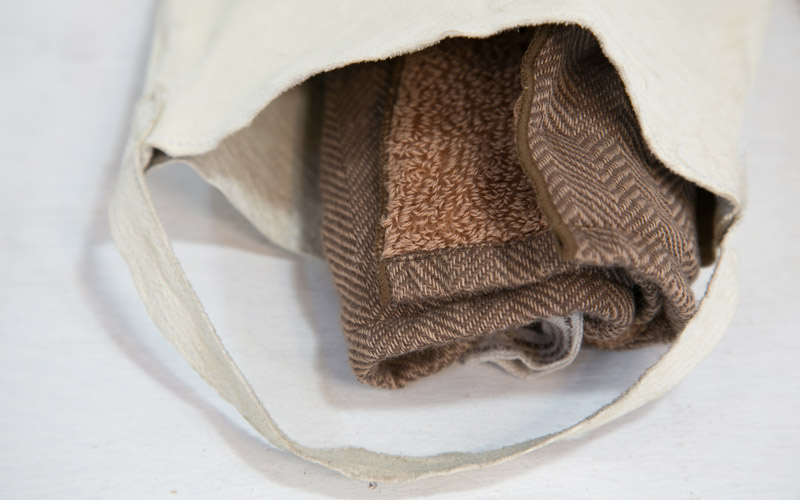 濃茶と薄茶の2色で先染めした糸を使っています。