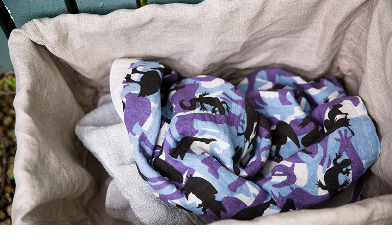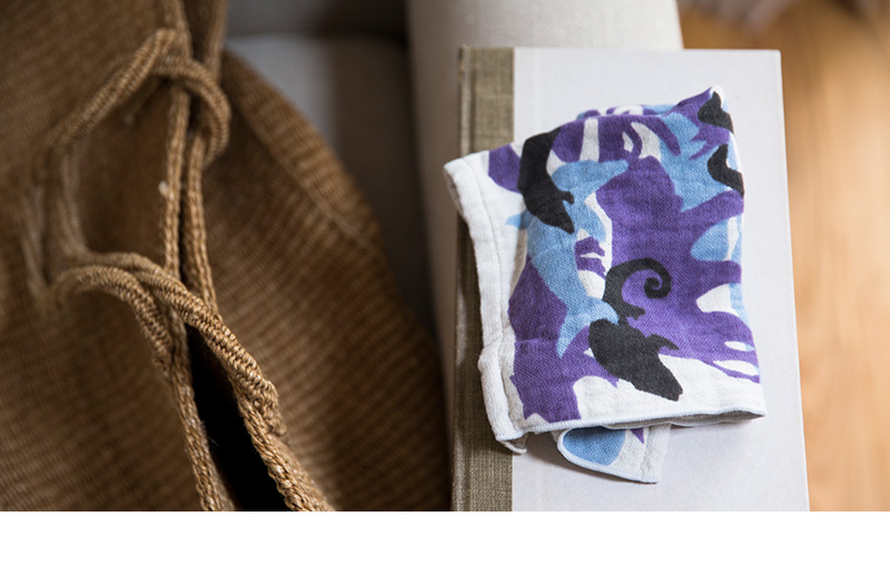 濃いパープルとブルーグレーと黒で迷彩になっている柄。