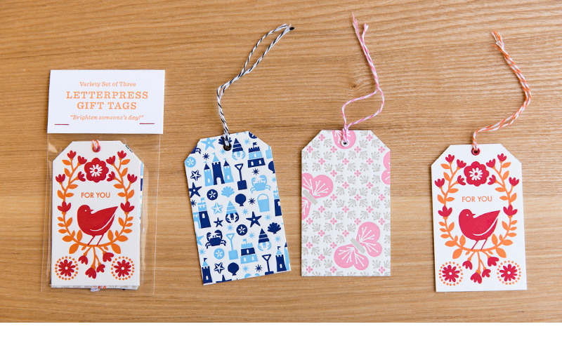 バスの「summertime」の柄3つをセットにした、ギフトタグ。