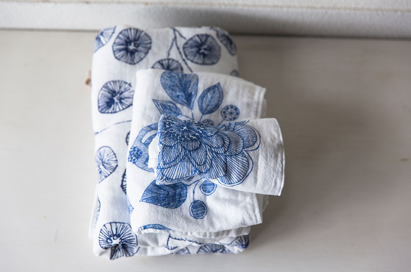 白いタオルに青い花が咲いた きらきら光るシャンデリアのような 絵本からとびでてきたような森のどうぶつと、 ガーリィでかわいい、だけじゃない、 東京藝術大学在学中に、 「インテリア・ファブリックとしても、すぐれたものを」 今回の販売では、大谷さんのつくってきたプロダクトも、 大谷有紀さんデザインの「やさしいタオル」は、3つの柄。 それぞれの柄、ハンド(875円)、フェイス(1851円)、 バス(4937円)の3サイズです。 12/16(火)「ほぼ日ストア」で販売スタートです。 *価格は税込・配送手数料別です。 |