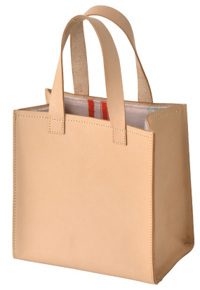 20cm×20cmの正方形のヌメ革のバッグです。