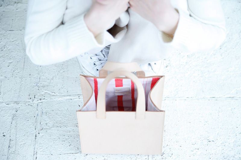 20cm×20cmの正方形のヌメ革のバッグをつくりました。
