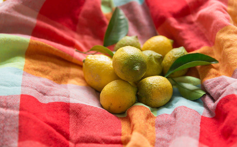 シトラスは、ガーゼ面に、カラフルで明るい色の糸を使って、