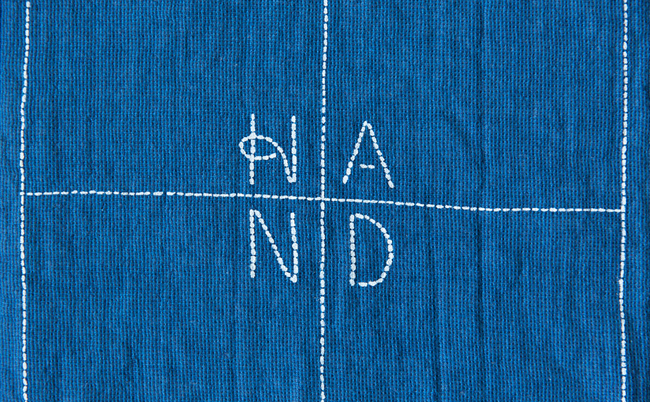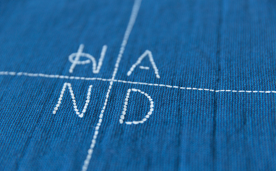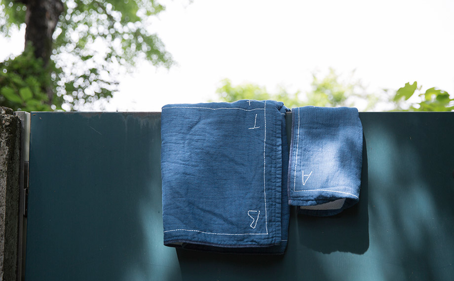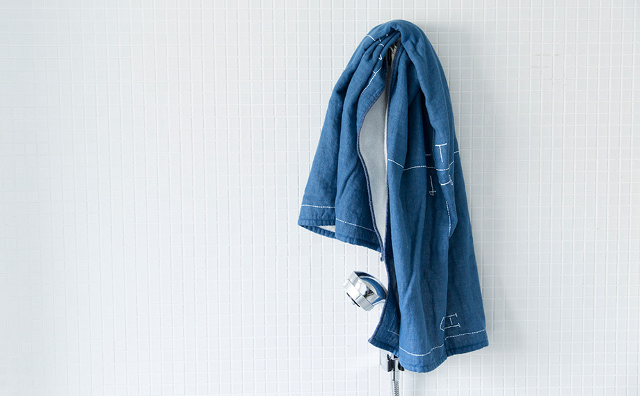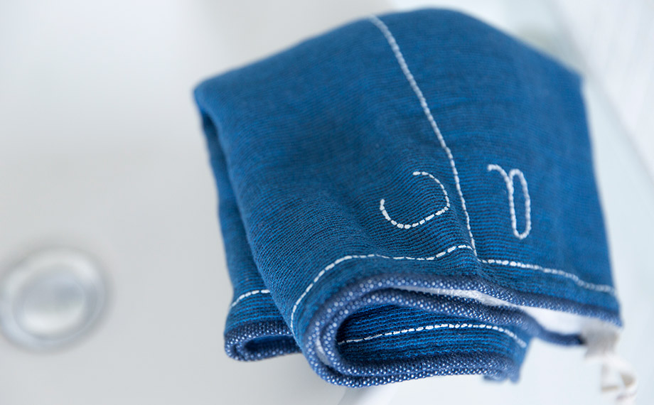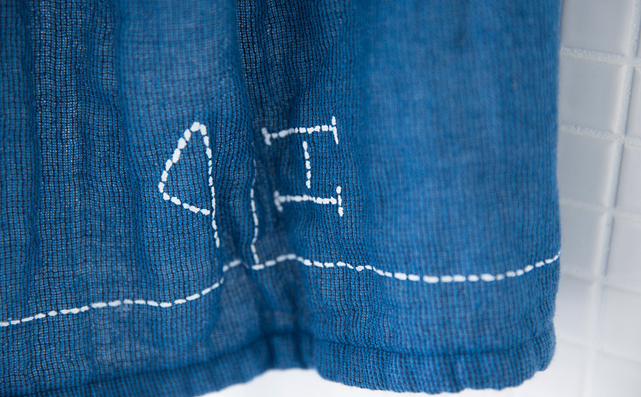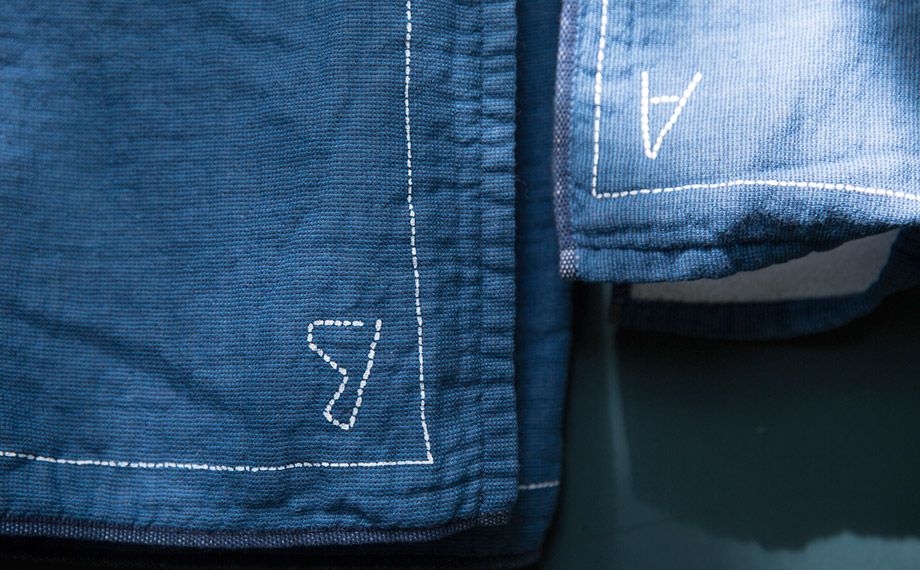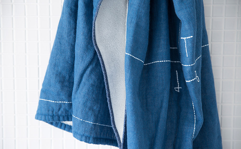 質感のあるプリントで刺し子ふうの点線を再現しました。