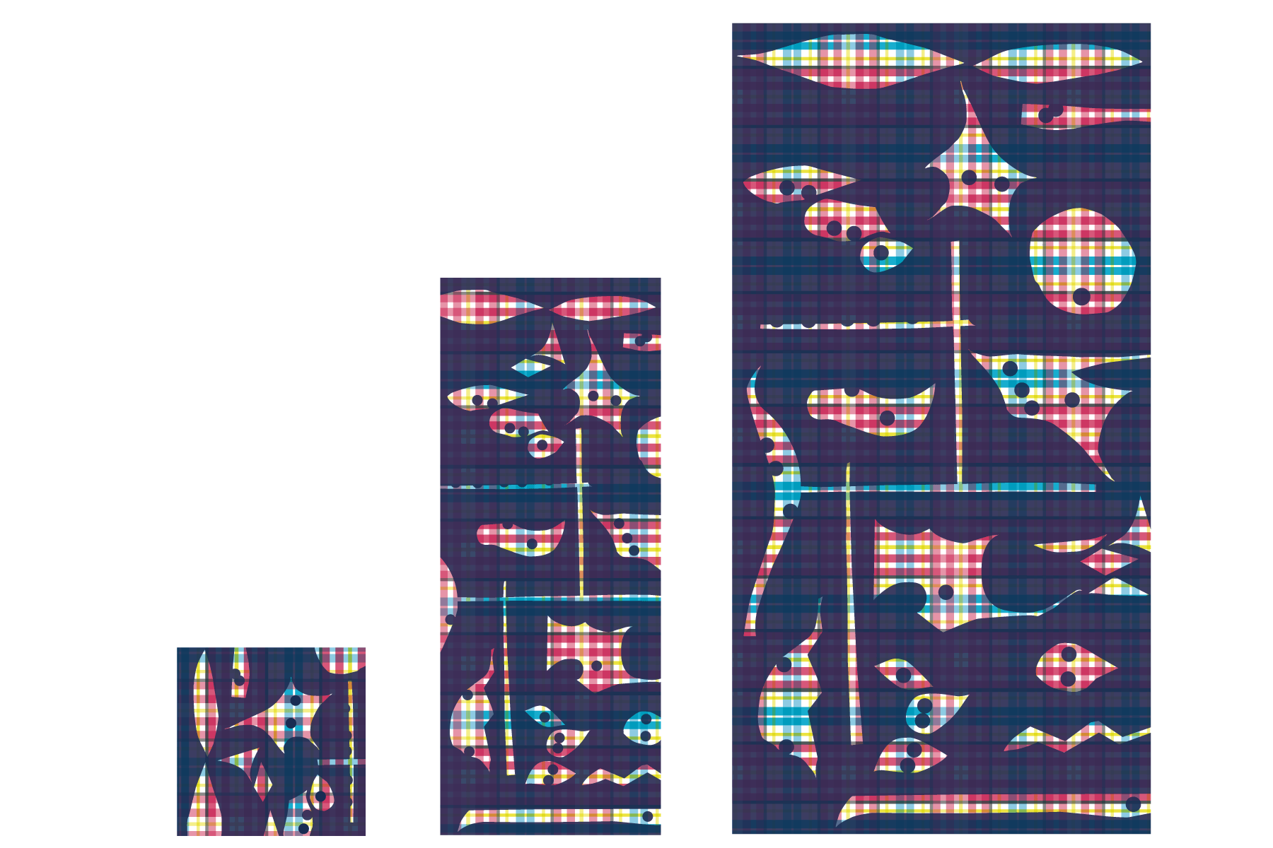 切り絵の抜き型を組み合わせ、プリントを施すという、