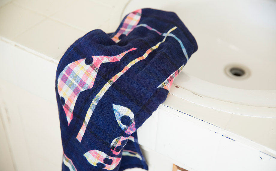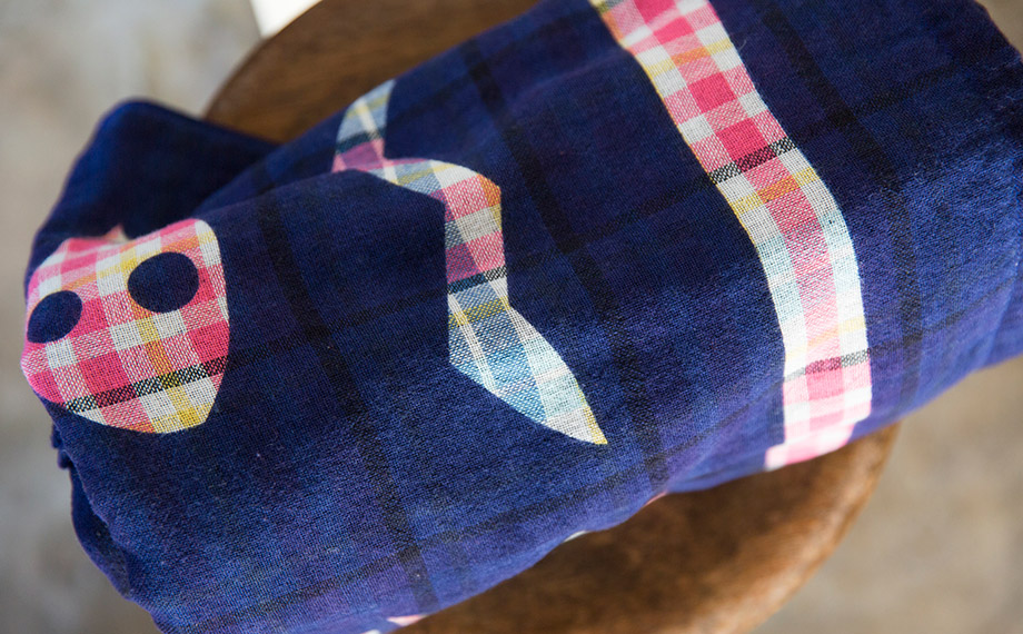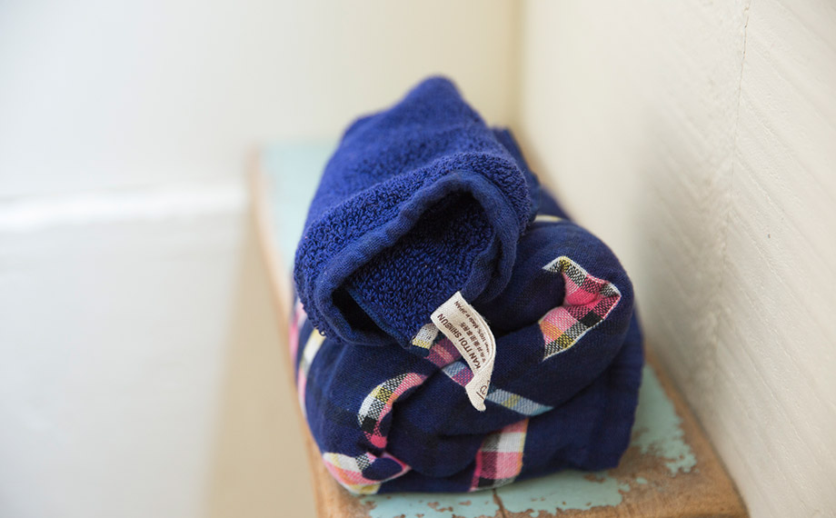 まずチェック柄に織ったタオルに、