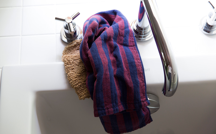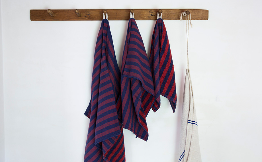 このストライプ、ガーゼ面だけでなく、 パイル面にも同じように入っています。 最高品質の綿を使っているだけに、発色がとてもきれい。 インテリアとして強いアクセントになりそうです。