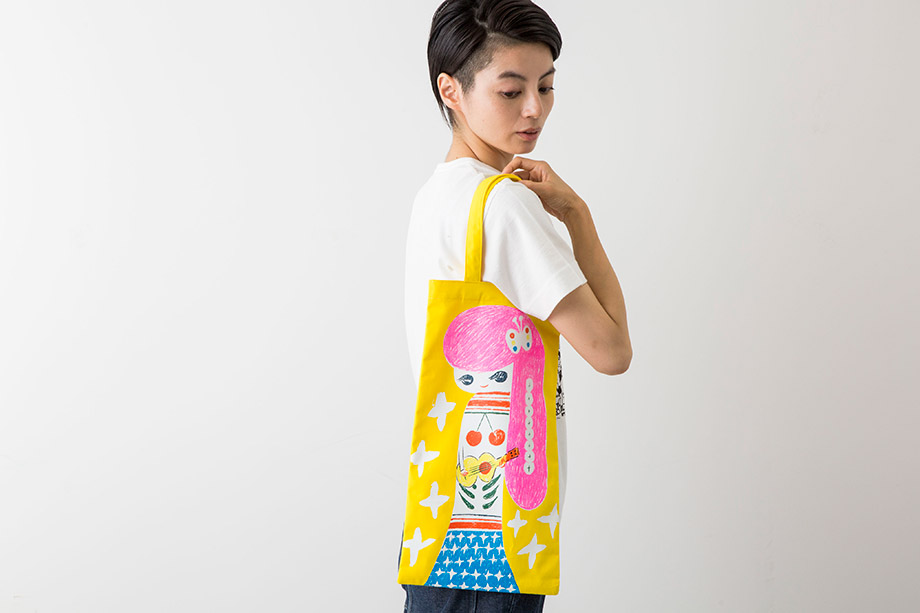 荒井良二さんの絵をサンドブラスト風にプリントしました。
