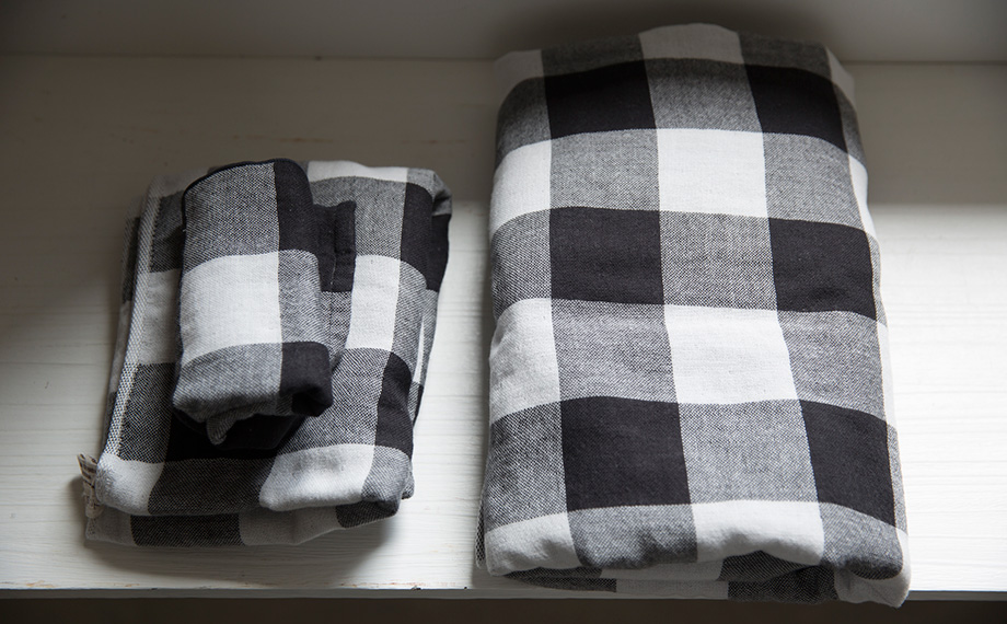 大きな格子柄の、白と黒のギンガムです。 モノトーンですが、柄ゆえのはなやかさがあり、 しかもトラディショナルな雰囲気があって、 インテリアによくなじみます。 うんとシンプルではっきりした色使いは、 部屋のどんなシチュエーションにも 合わせやすく、また、使う人をえらびません。