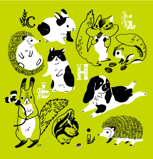 グリーンの地色に、小型どうぶつがずらり。