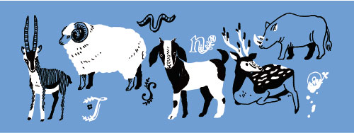 角のあるどうぶつが、小さなスペースに5ひき。