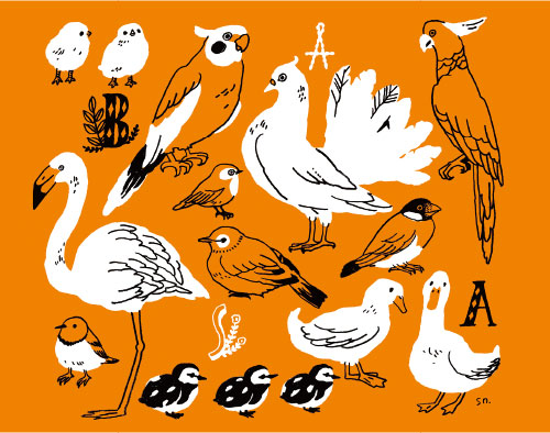 オレンジの地色に、身近な鳥が大集合!