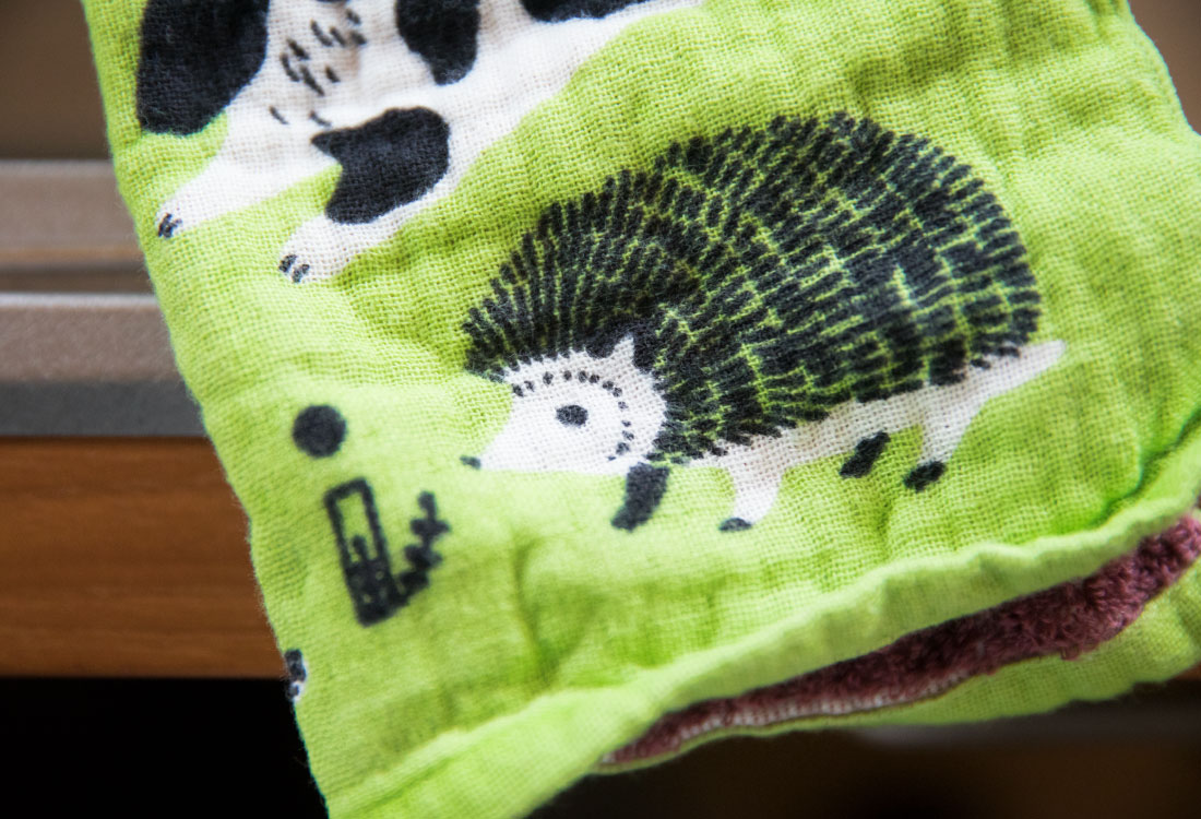 ガーゼ面にプリントしたイラストレーションと