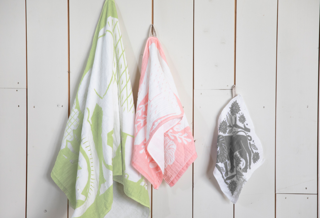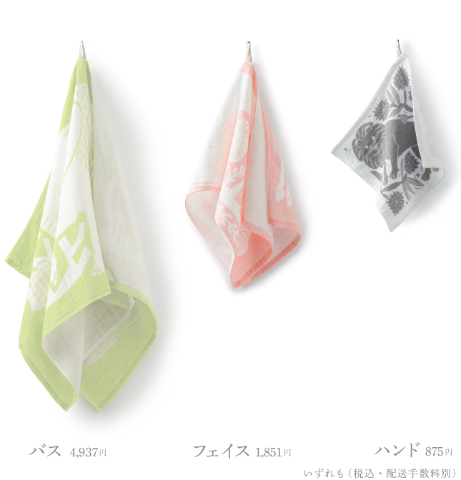 鹿児島睦さんデザインのやさしいタオル「Animals & Flowers」は、