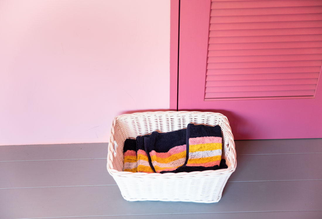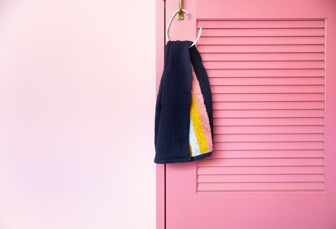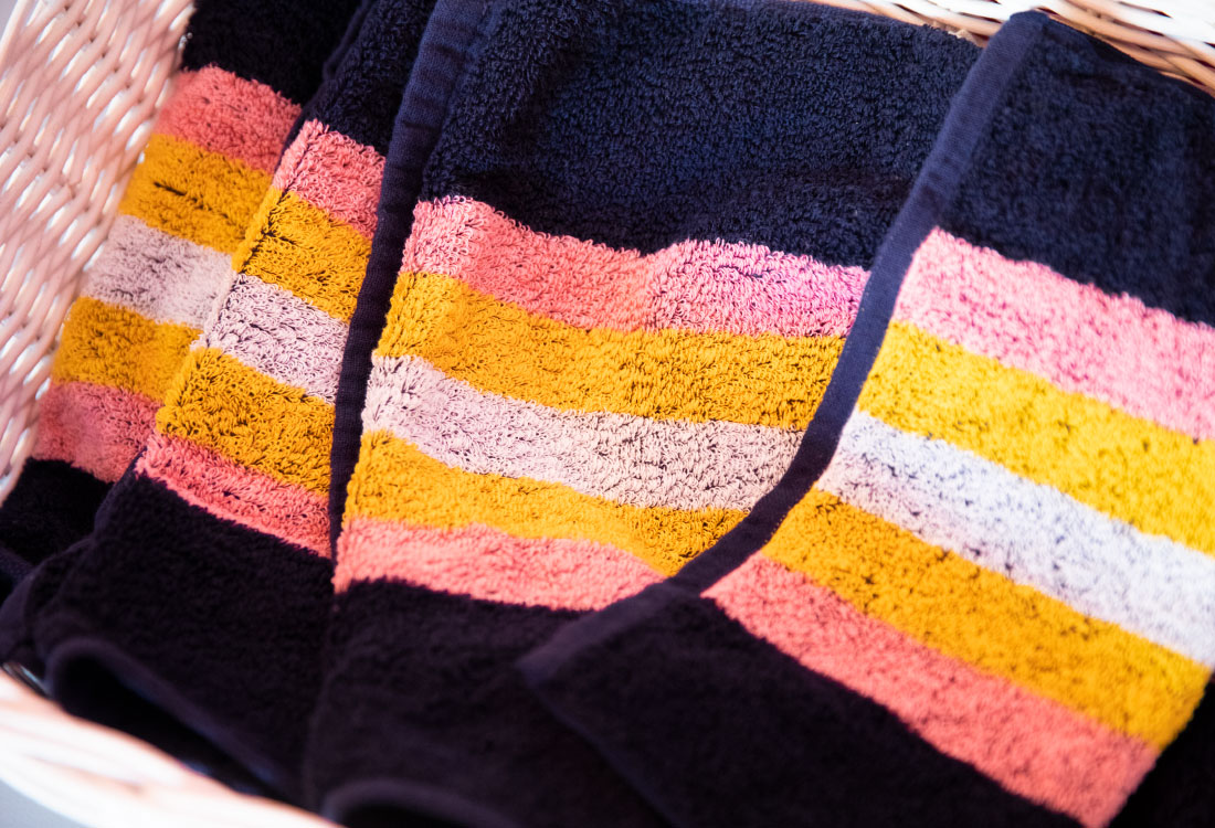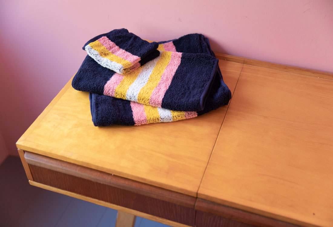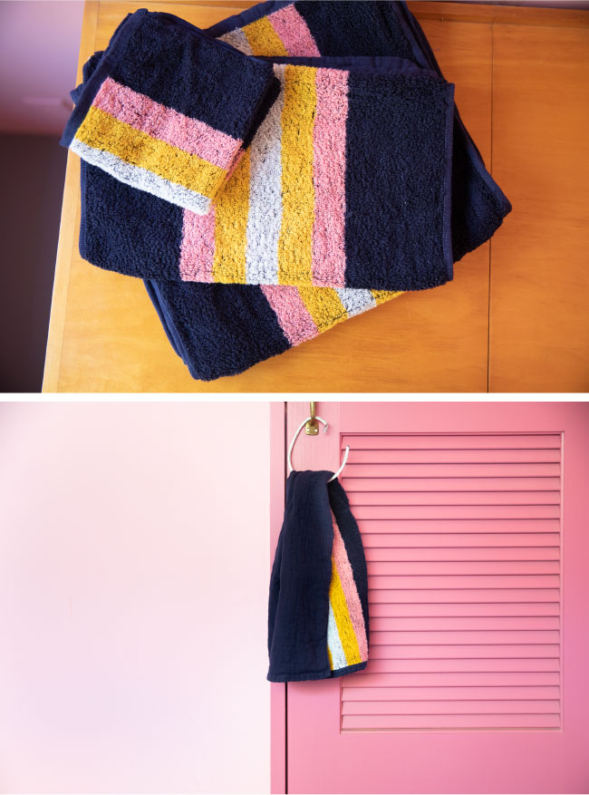あえてパイル面に、縦にまっすぐ色面を配し、