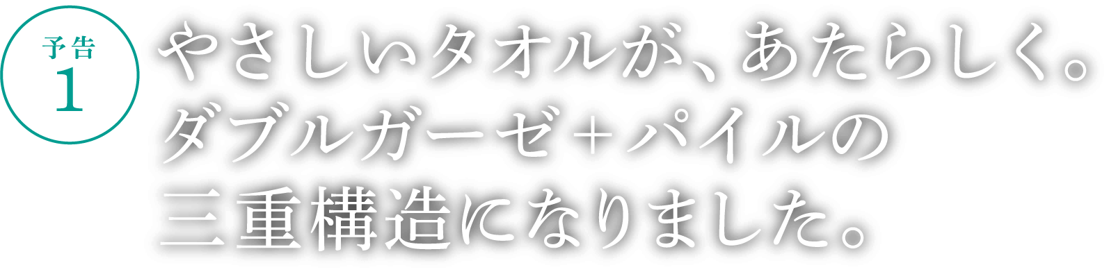 “ダブルガーゼとパイルの三重織り”にかわります!