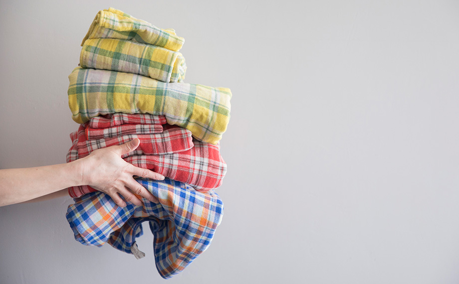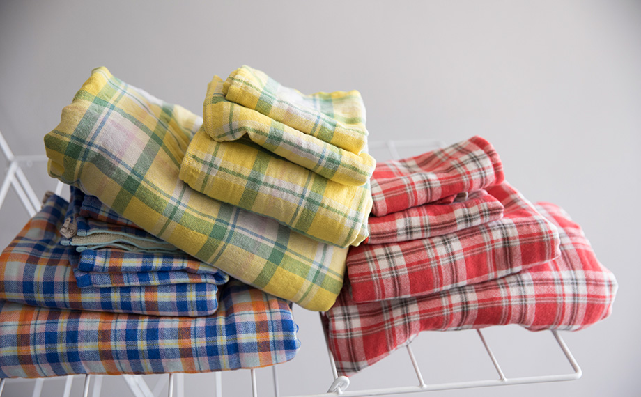 マリンブルー、ピンク、オレンジ、きいろの糸で