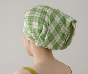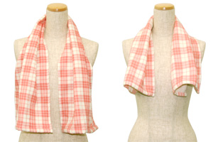 | ▲おまけですが‥‥「フェイス+28」を お風呂上がりのドライタオルとして髪に巻いてみました。 フェイスタオルよりもたっぷり長い分、 髪の長い方におすすめです。 |