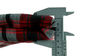 ▲バスサイズの「やさしいタオル」を四つ折りにした高さを測ってみました。