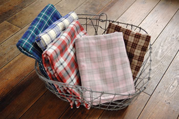 2色の糸がタテとヨコに交差して生み出すチェック柄は、