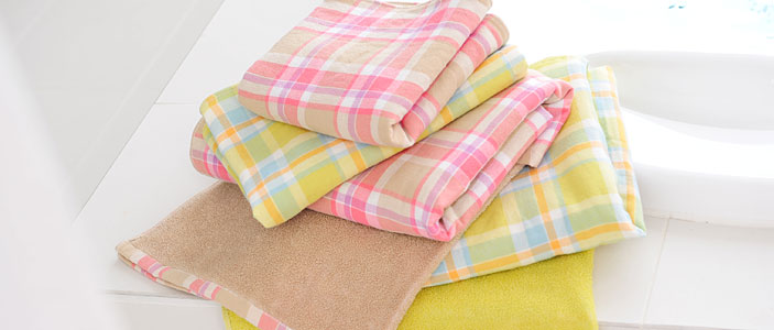 「やさしいタオル」ではじめてのマドラスは、 長く愛されてきた伝統色をいかした 「レッド」と「チャコール」と、 ペールトーンを組み合わせた 「ピンクベージュ」と「ライムグリーン」の 4デザインです。